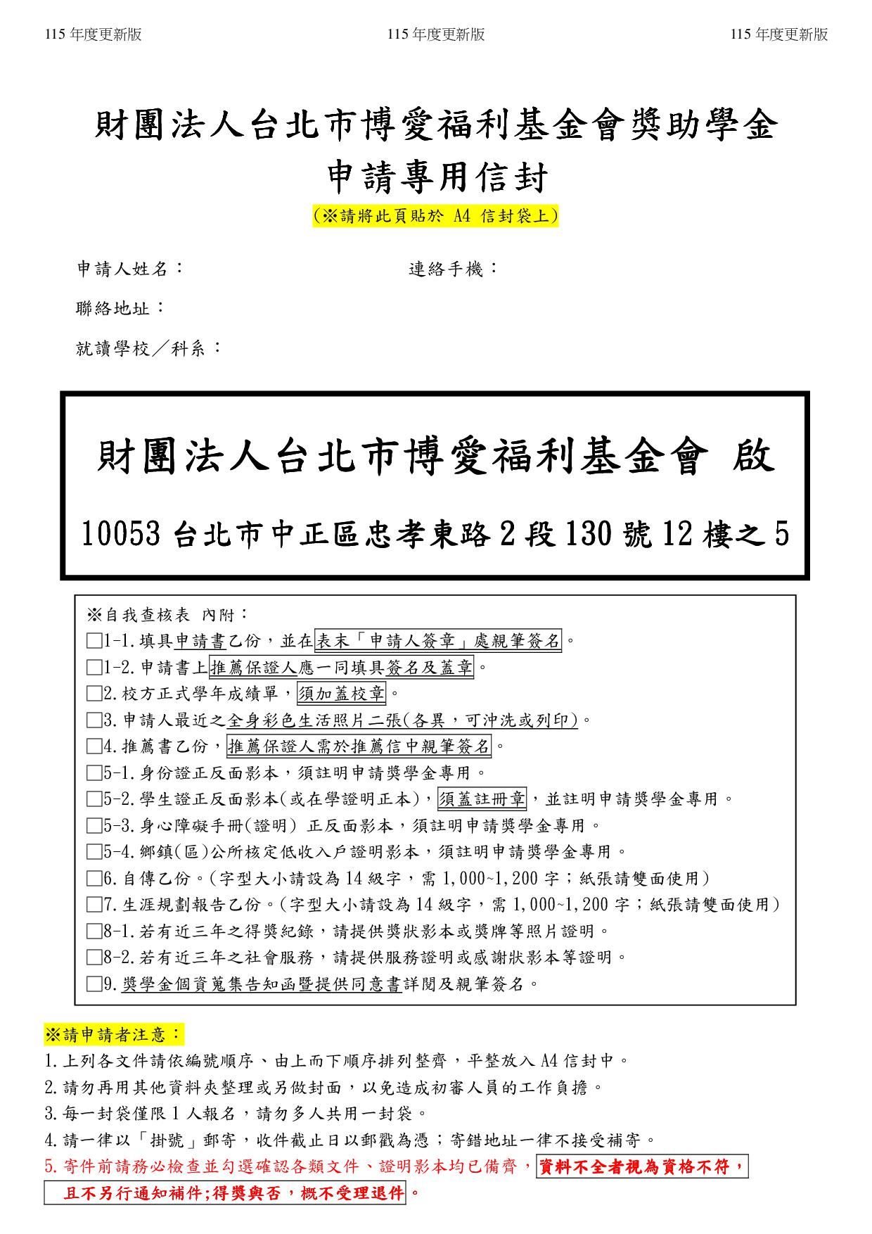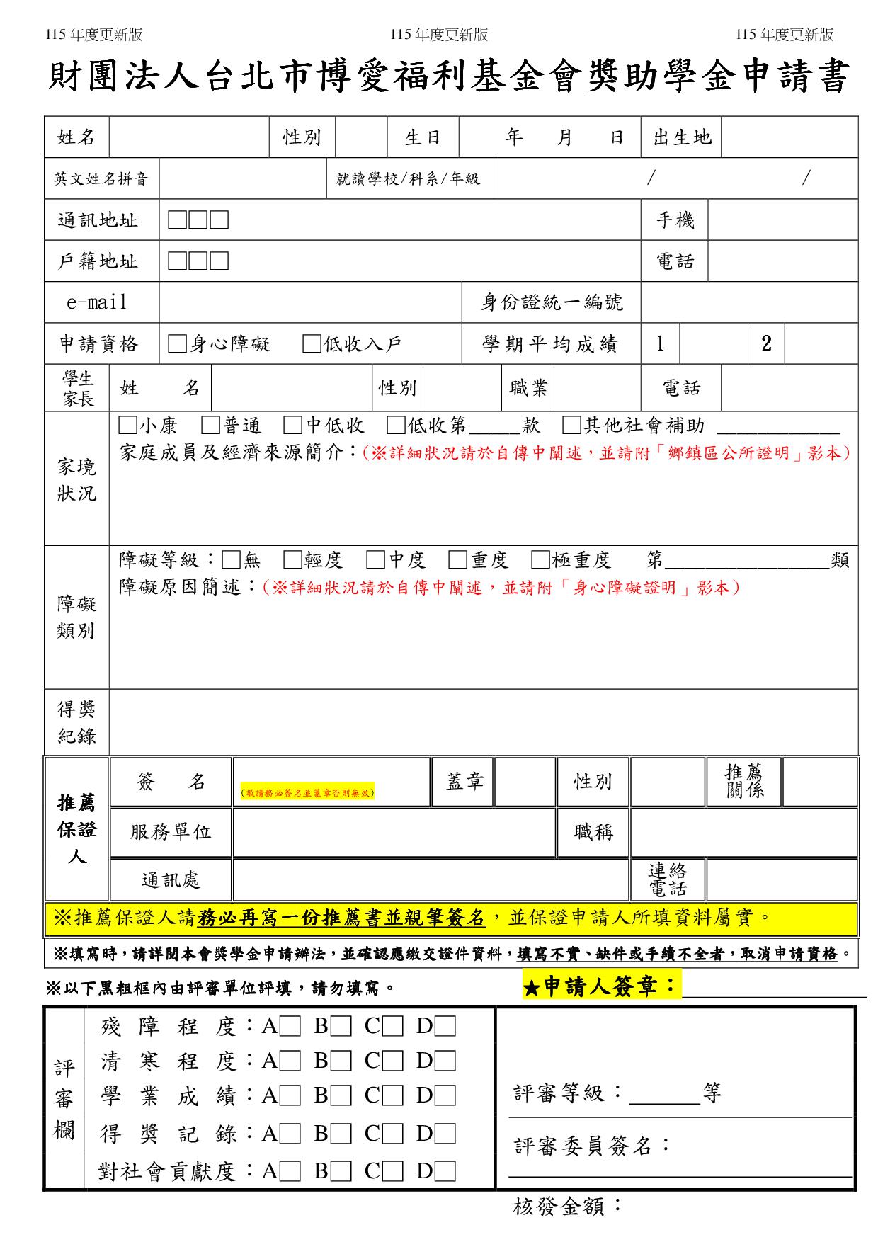 2.財團法人台北市博愛福利基金會奬助學金申請書_115年版